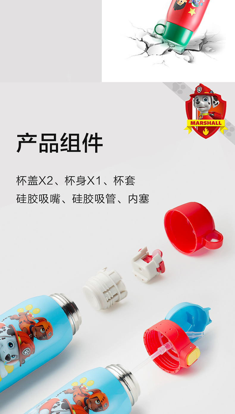物生物儿童保温杯 防摔幼儿园便携水杯宝宝吸管杯