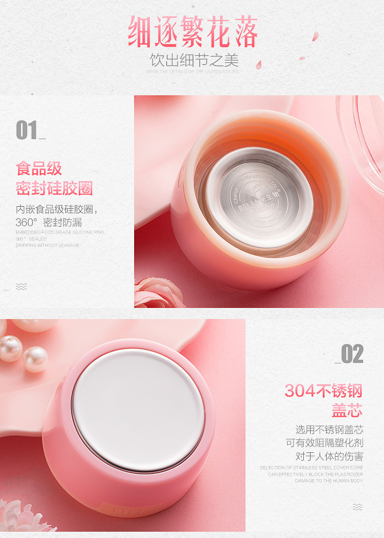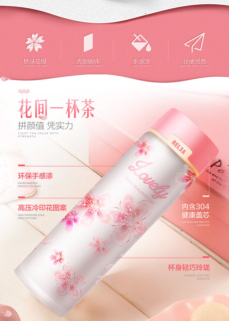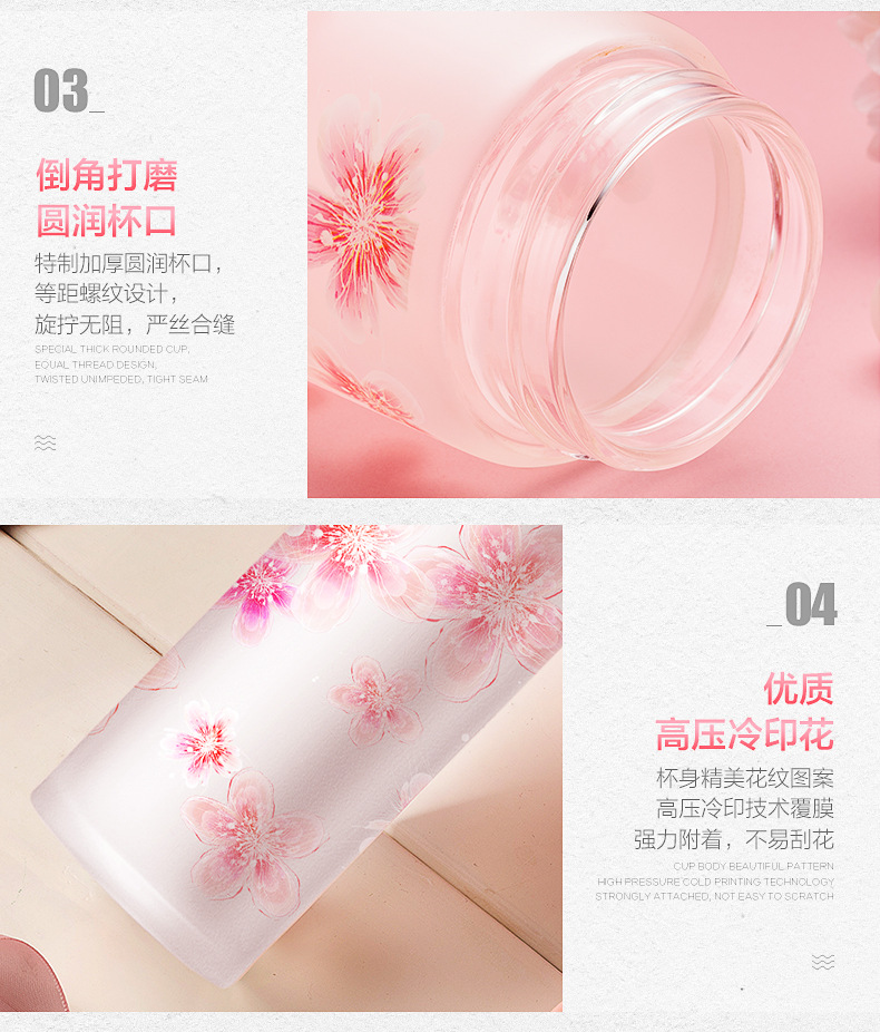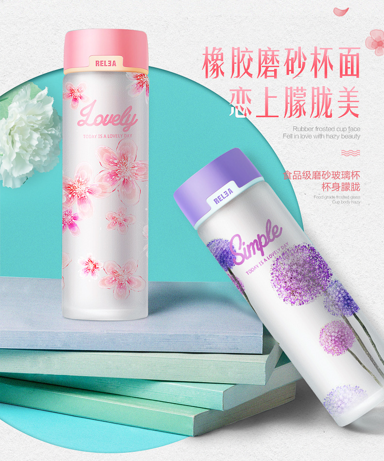 5. 物生物玻璃杯女韩式便携可爱随手杯子学生韩版花漾水杯