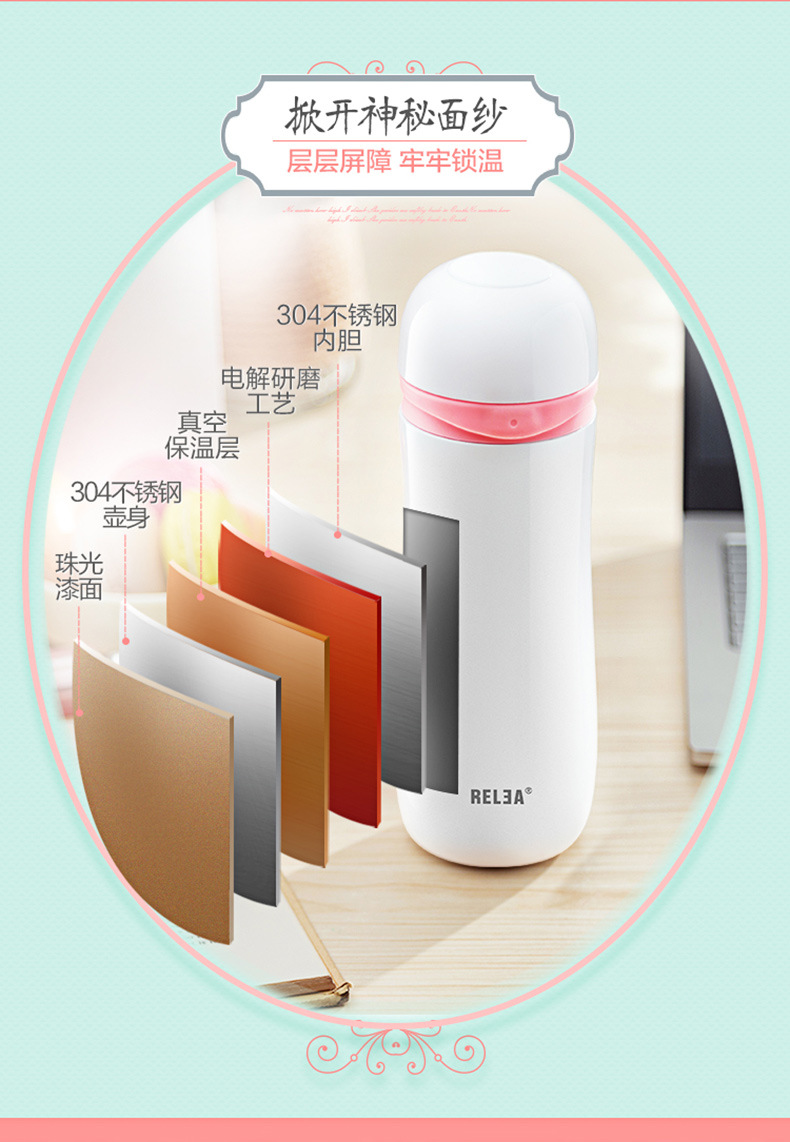 5. 物生物保温杯时尚女士学生儿童不锈钢车载直身水杯茶杯子