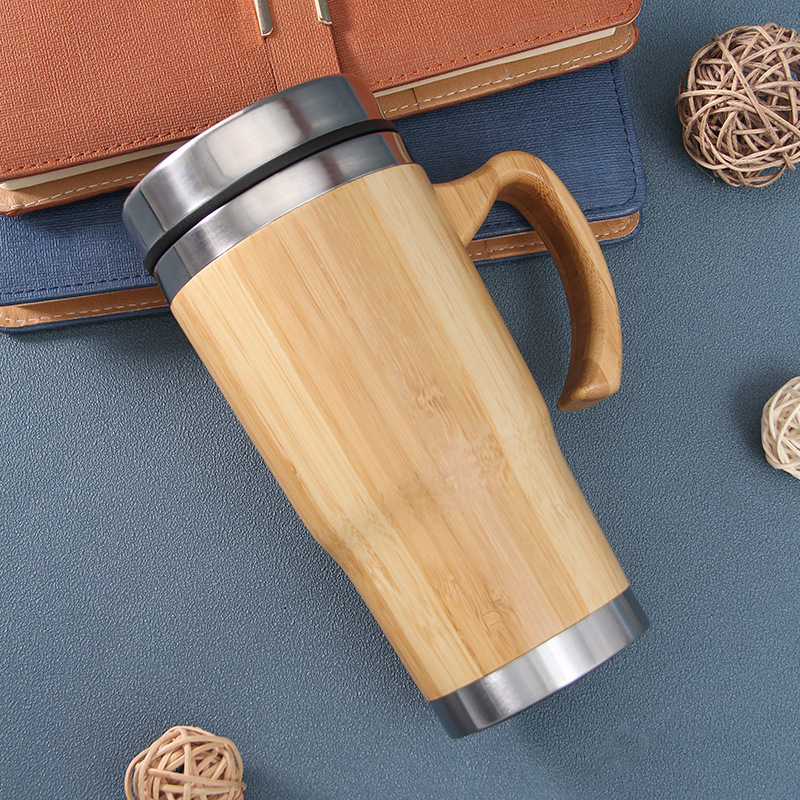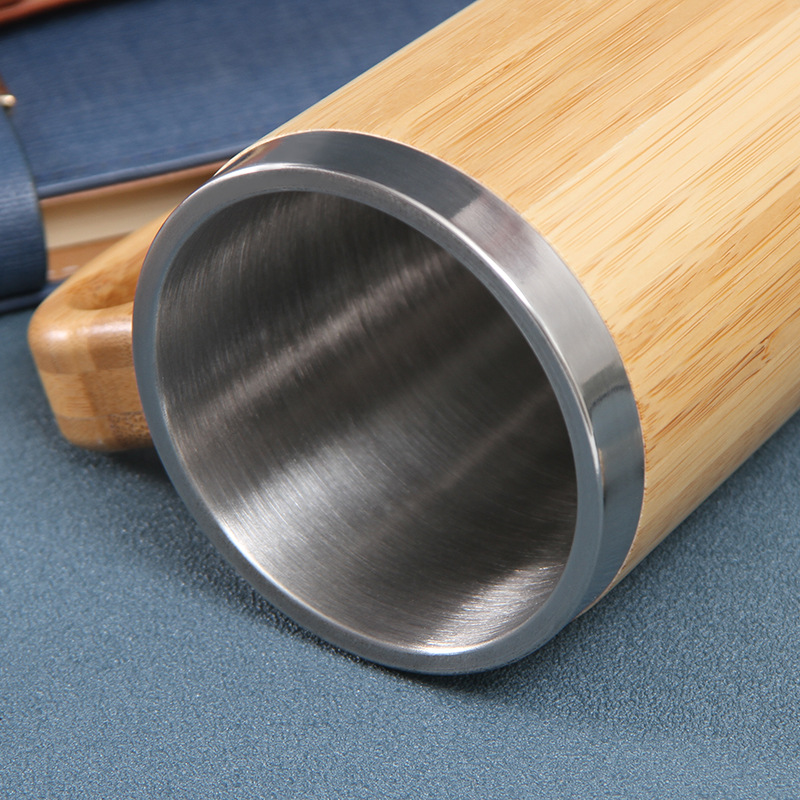 5. 不锈钢手柄汽车杯楠竹外壳商务办公礼品保温杯定制