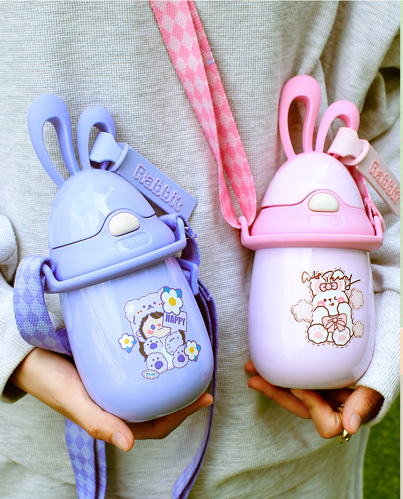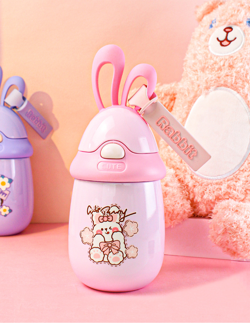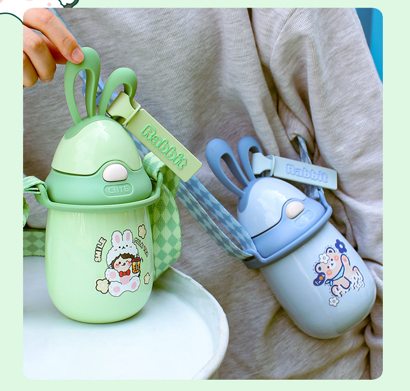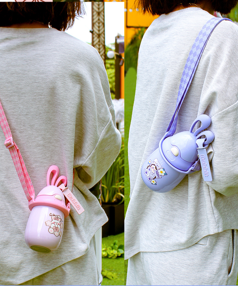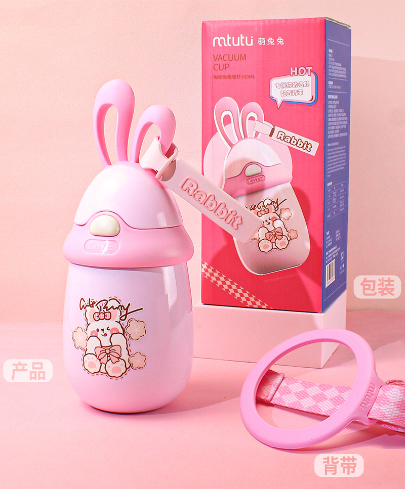 5. 304不锈钢保温杯卡通兔子耳朵杯旅游便携背带水杯定制