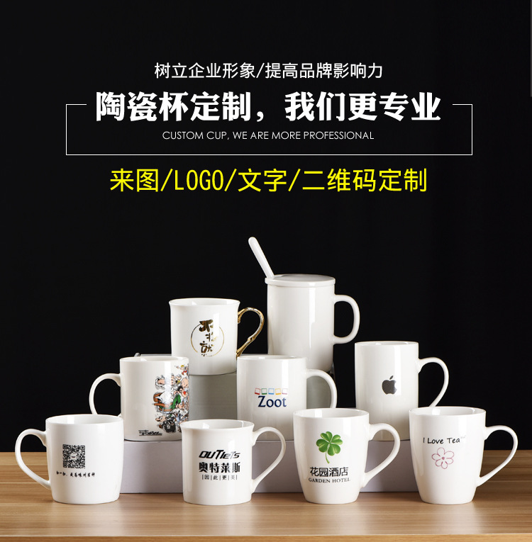 5. 创意陶瓷咖啡杯 定做印字白色马克杯定制logo