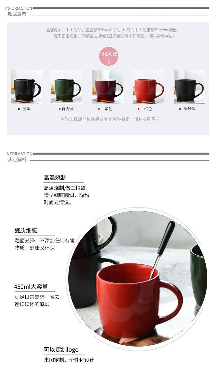 5. 大容量早餐牛奶杯陶瓷色釉杯子咖啡杯办公送礼可定制logo图