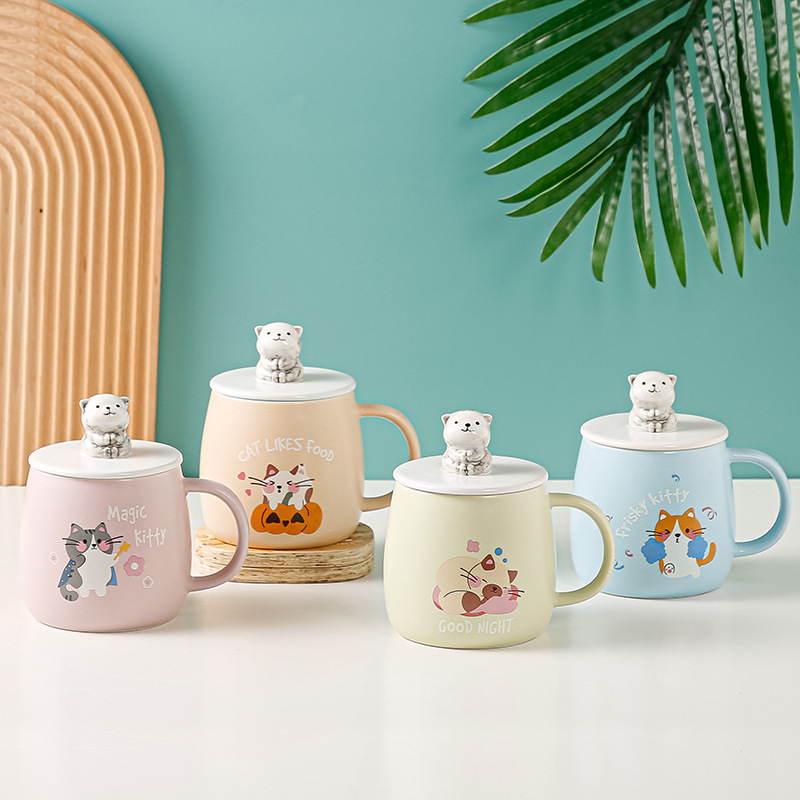 手绘立体猫咪陶瓷杯马克杯创意礼品时尚水杯定制