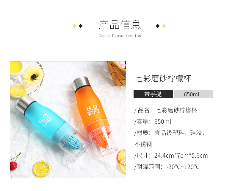 5. 韩国新款运动塑料杯创意礼品水杯柠檬杯水果杯子定制LOGO