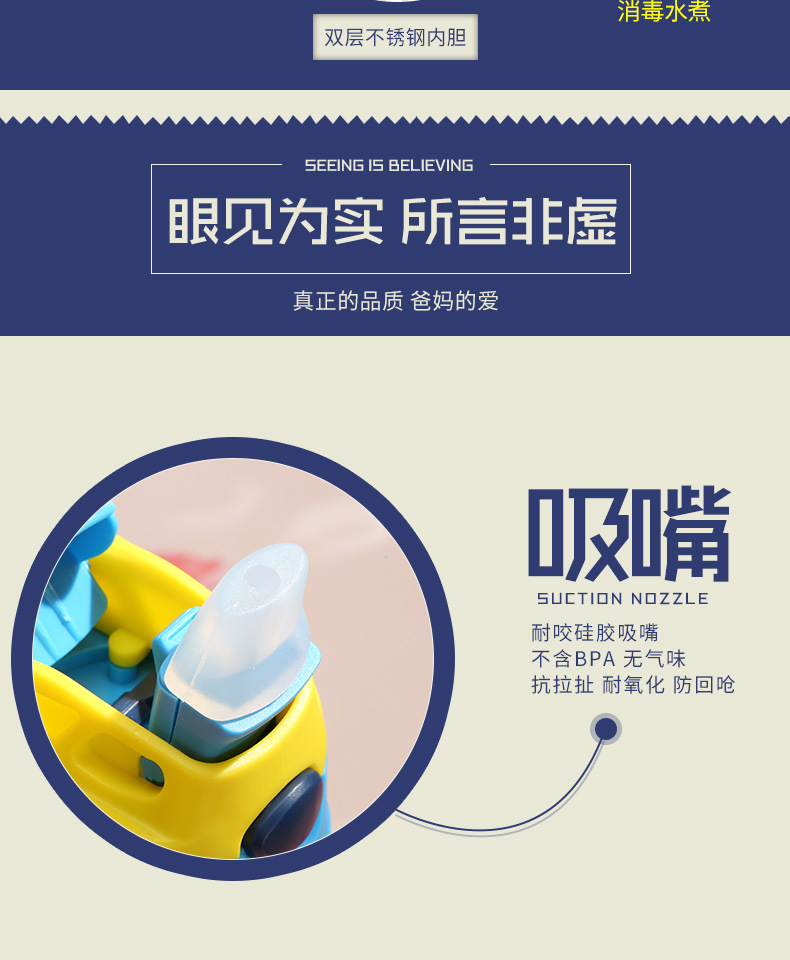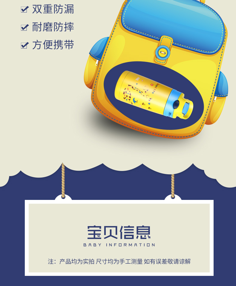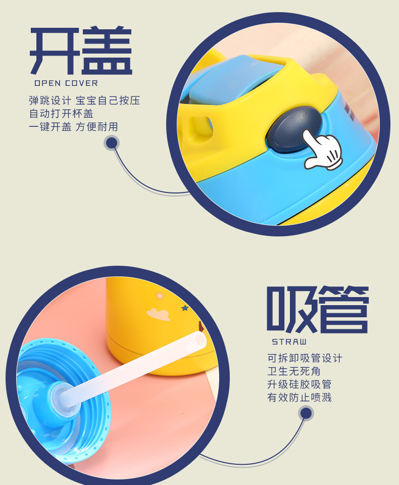 5. 儿童保温杯不锈钢学生直身水杯可爱男女卡通吸管杯子