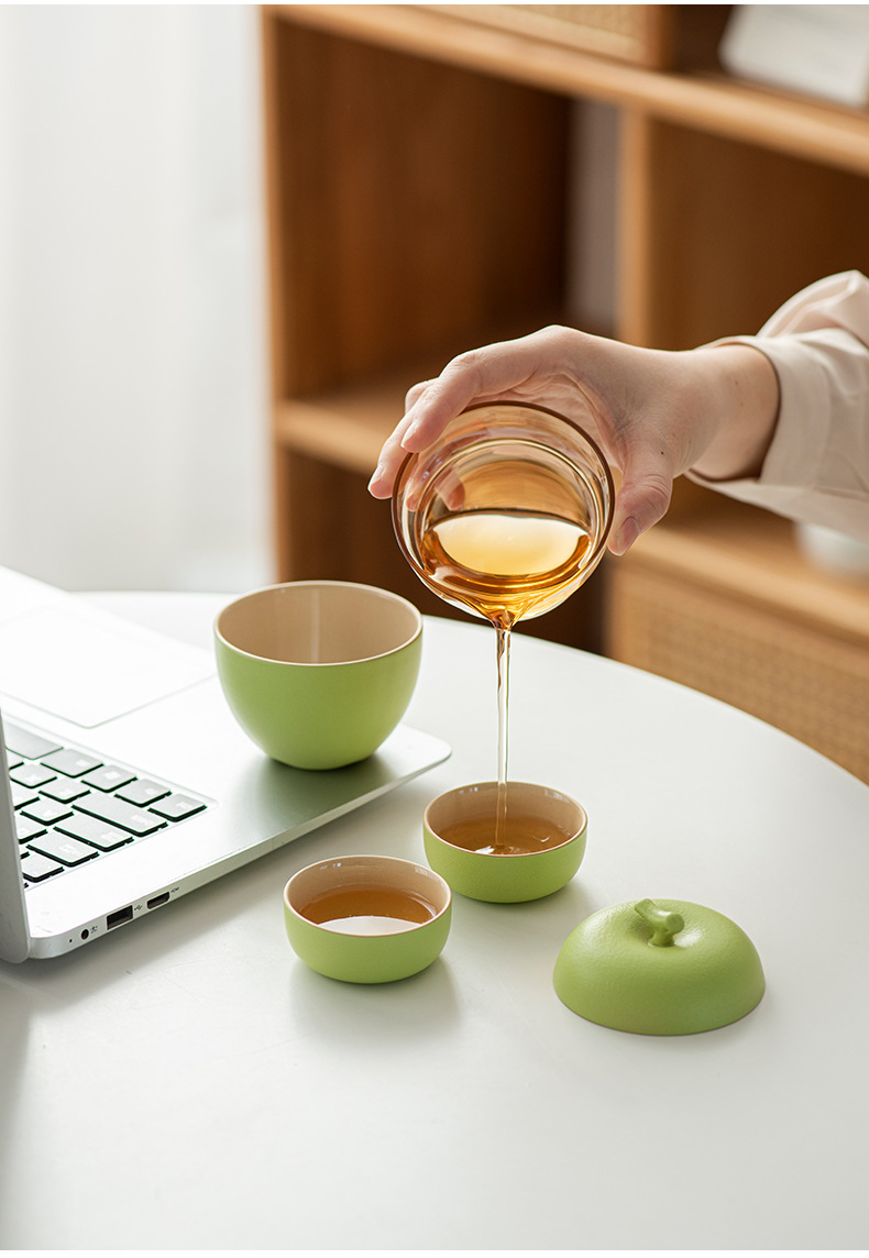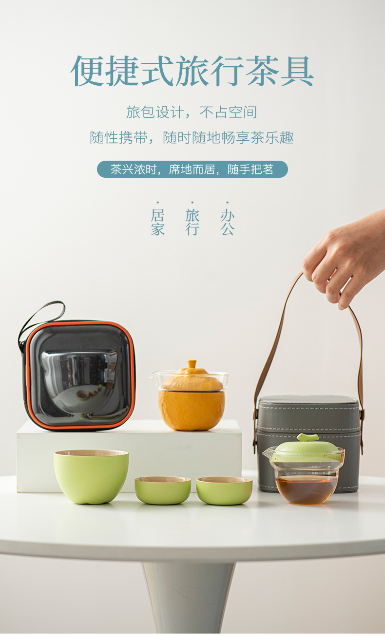 5. 定制户外旅行功夫茶具便携套装批发一壶三杯陶瓷快客杯