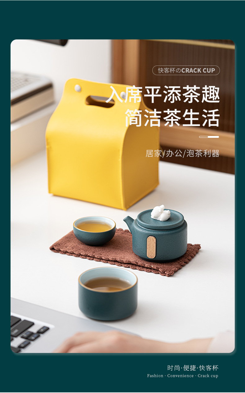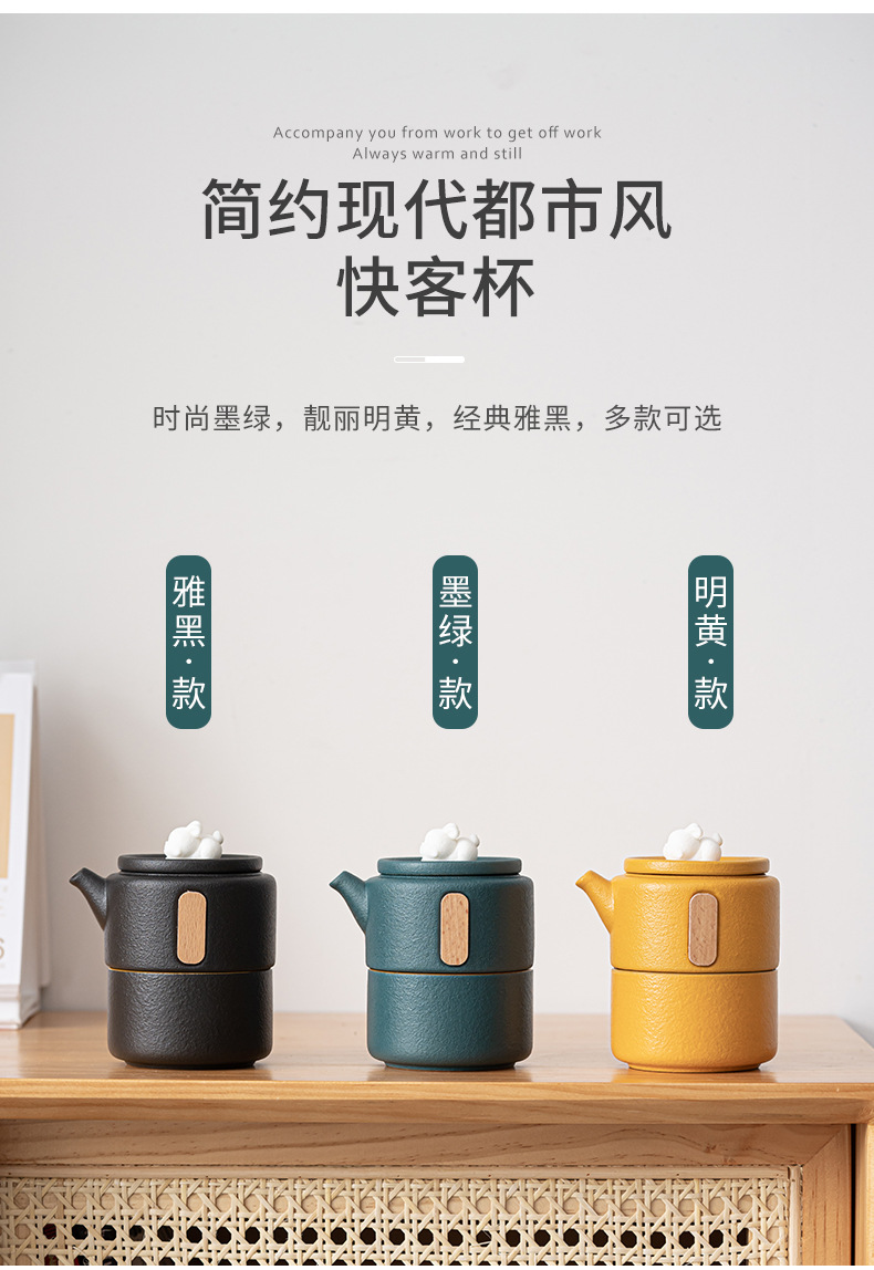 5. 定制粗陶快客杯便携式功夫旅行茶具套装一壶二杯