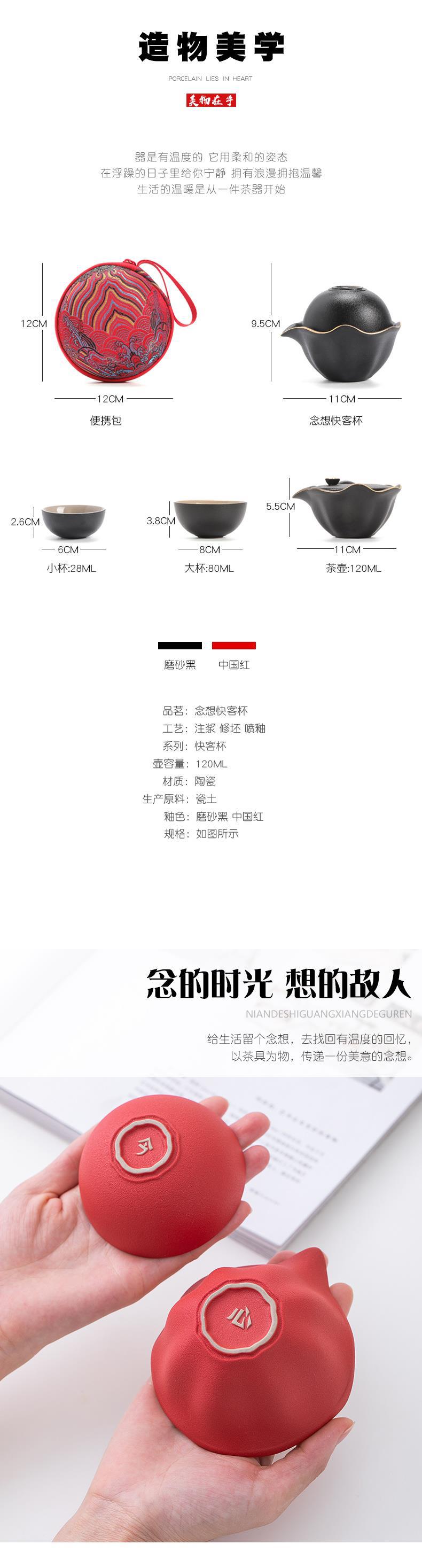 5. 定制户外旅行茶具便携套装批发一壶三杯陶瓷快客杯