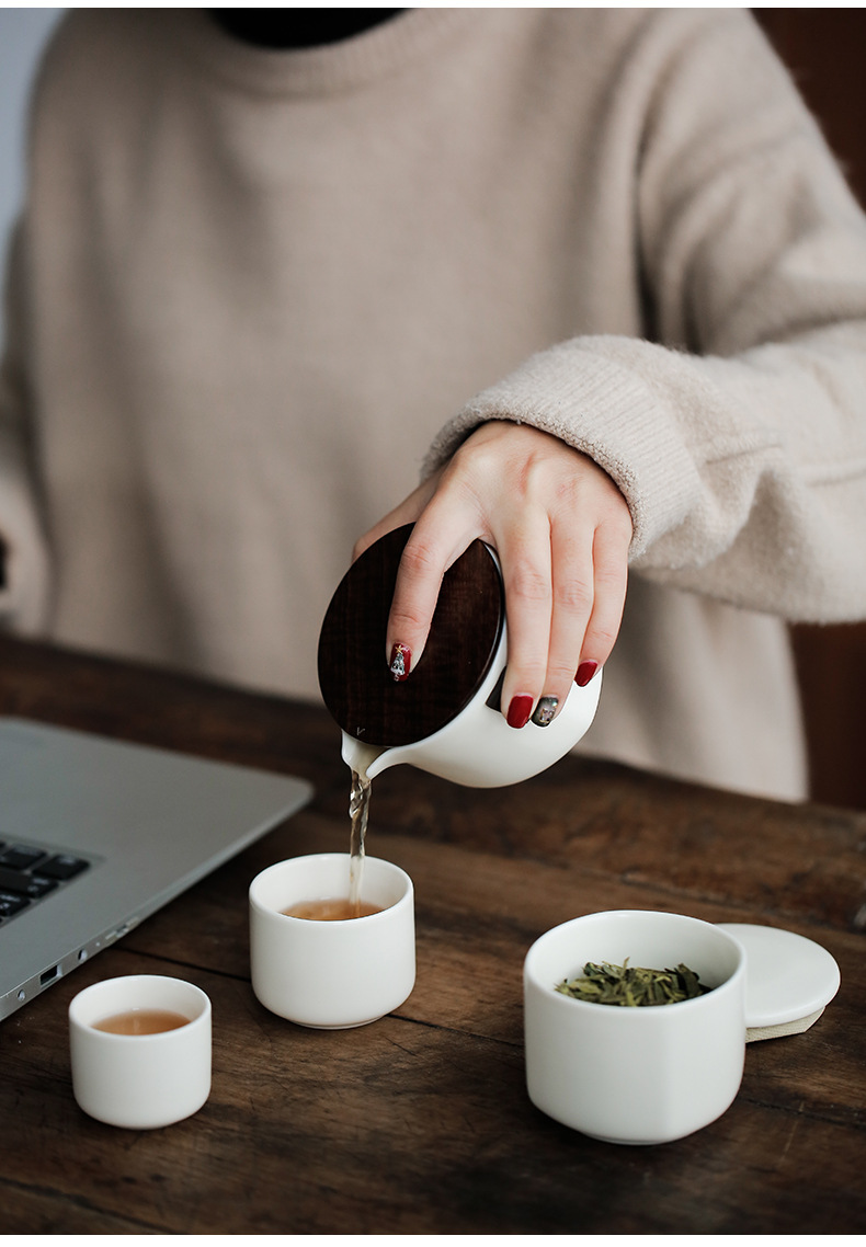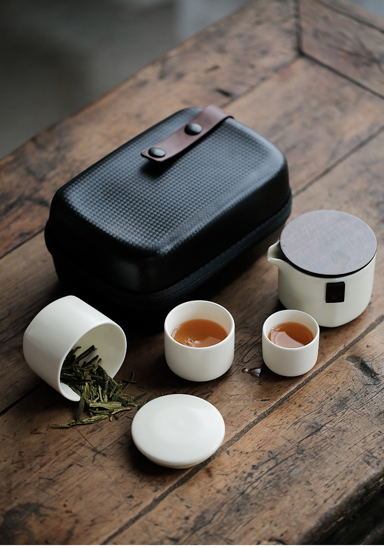 5. 便携式户外旅行茶具套装陶瓷快客杯一壶二杯商务礼品定制